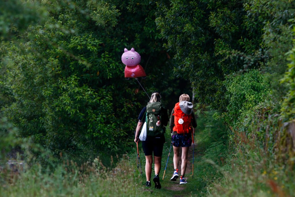 Esta simpática imagen evoca la inocencia y la curiosidad de los más pequeños, simbolizadas en el globo que acompaña la escena y que abre también el camino a los más pequeños y jóvenes. La fotografía invita a reflexionar sobre el inicio del camino, la ilusión y los motivos personales que impulsan a caminar.