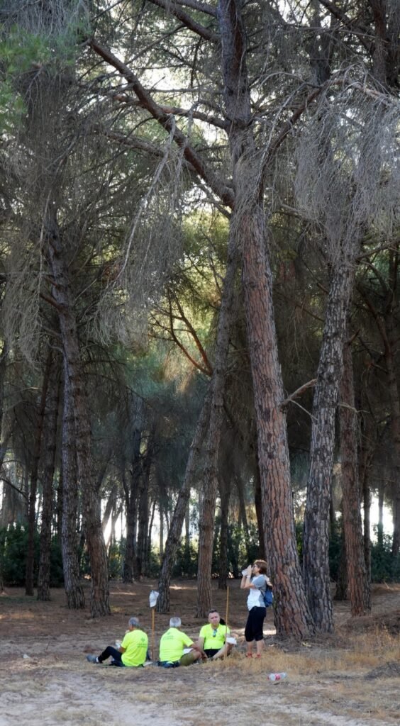 Una vez allí, las fotografías de rigor y un rato de ocio para visitar y ver el pinar, tomó la palabra Miguel Anaya de la empresa La Strada di Miguel, que nos facilito mapas de la zona y nos hizo un breve resumen sobre la importancia de este pinar para Utrera, dado que es un pulmón natural que nos abastece de oxigeno limpio y saludable a la población de nuestra localidad. Los asistentes realizaron distintas preguntas a las que fueron respondidas. También indico la importancia de este enclave para las aves migratorias que tienen un lugar de descanso en su ida o venida hacia África, especialmente para los milanos reales que son los mas habituales, que no se tienen mas datos de otras especies, porque no hay un estudio especifico de paso de aves ni de cuidados del hábitat.